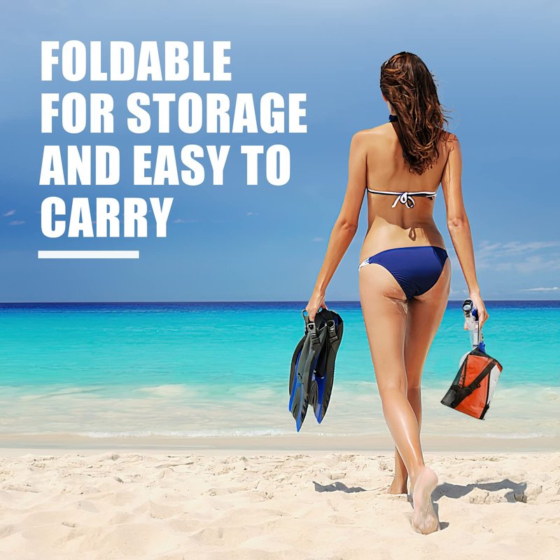 - 🐬【Foldable & Convenient】: Small footprint, Easy to pack, Simple to put on and take off, very comfortable without skin abrasions, fitting well for most adults. A little smart companion for journey (bonus mesh bag included).