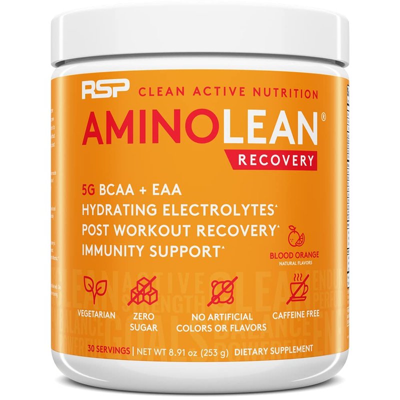 RSP AminoLean Recovery - Post Workout BCAAs Amino Acids Supplement + Electrolytes, BCAAs and EAAs for Hydration Boost, Immunity Support - Muscle Recovery Drink, Vegan Aminos, Blood Orange…