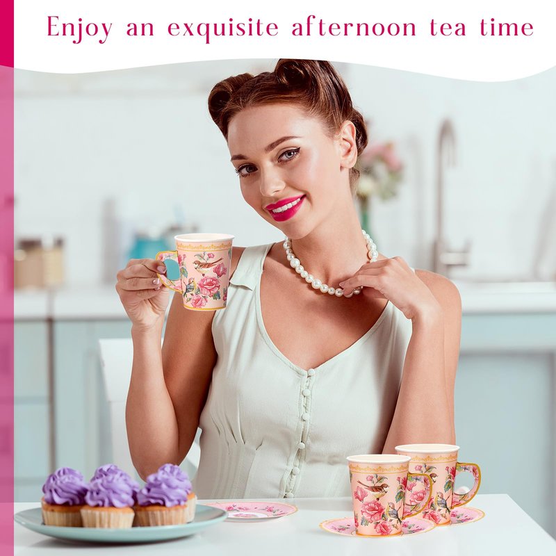 - Beautiful Decoration for Various Parties: they are more than just drinkware; The pink floral and bird pattern on the cups and saucers make for a nice decoration for various themed parties such as Christmas and Thanksgiving parties, ladies' parties, princess tea parties, bridal showers, Mother's Day, and garden parties
