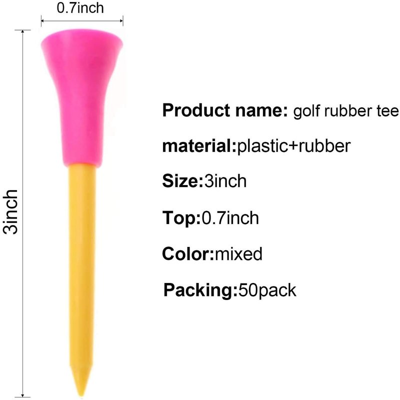 Rubber Cushion Top Plastic Golf Tees Mixed Colors Pack of 50pcs (3-1/4")