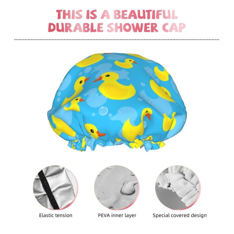 Rubber Duck Shower Cap for Women Reusable Double Layers Waterproof Shower Hair Protector PEVA Lined Shower Hat for All Long Hair Lengths, Stretchy Adjustable Shower Caps