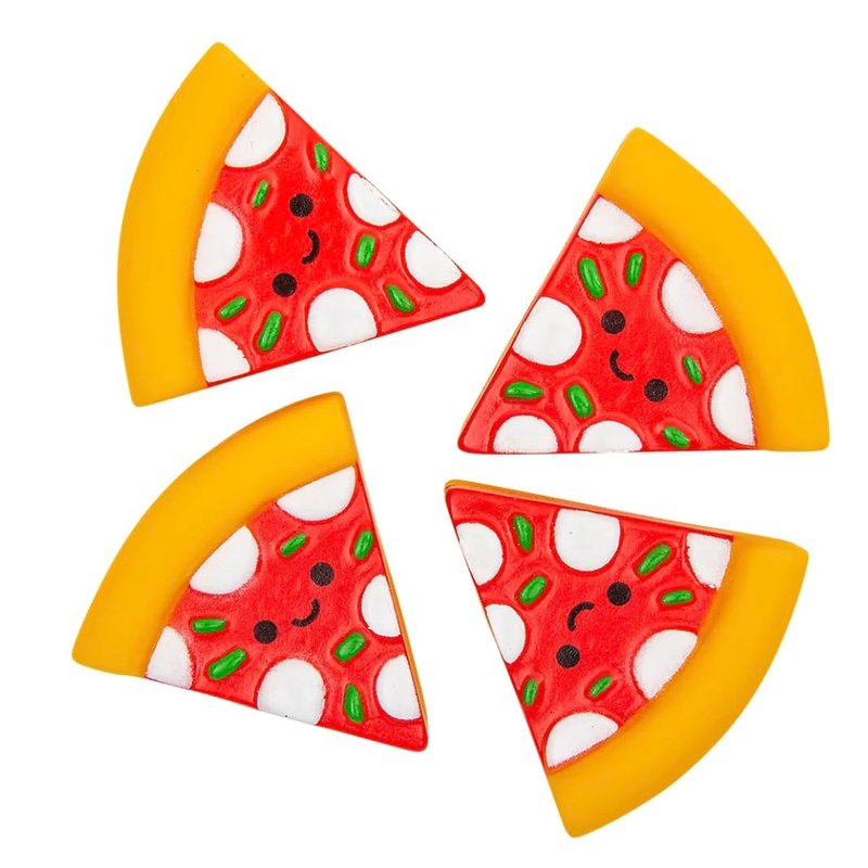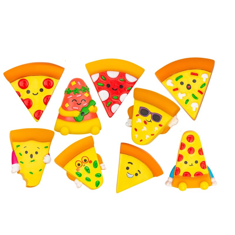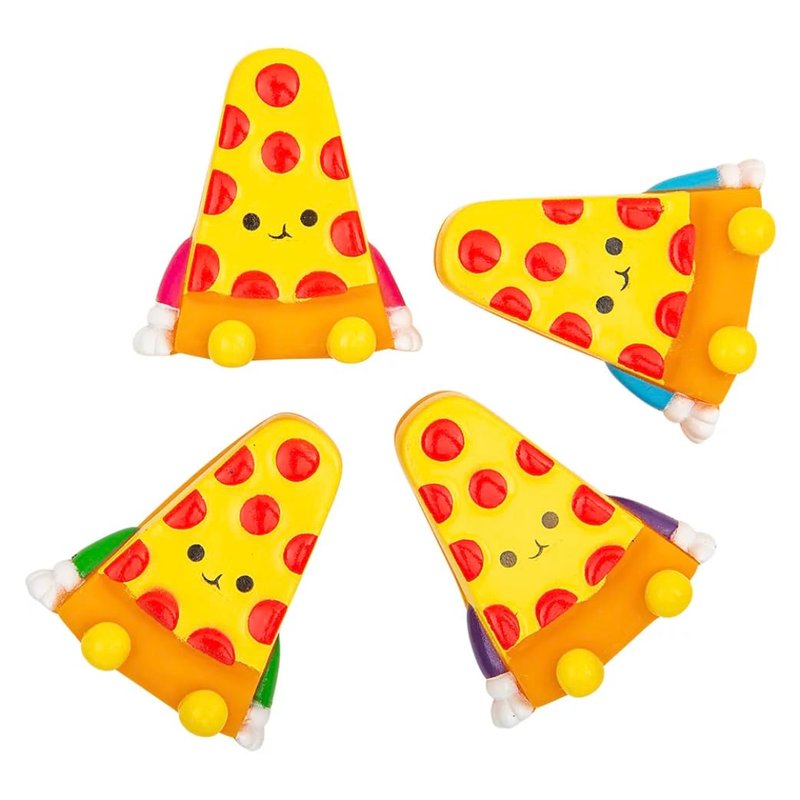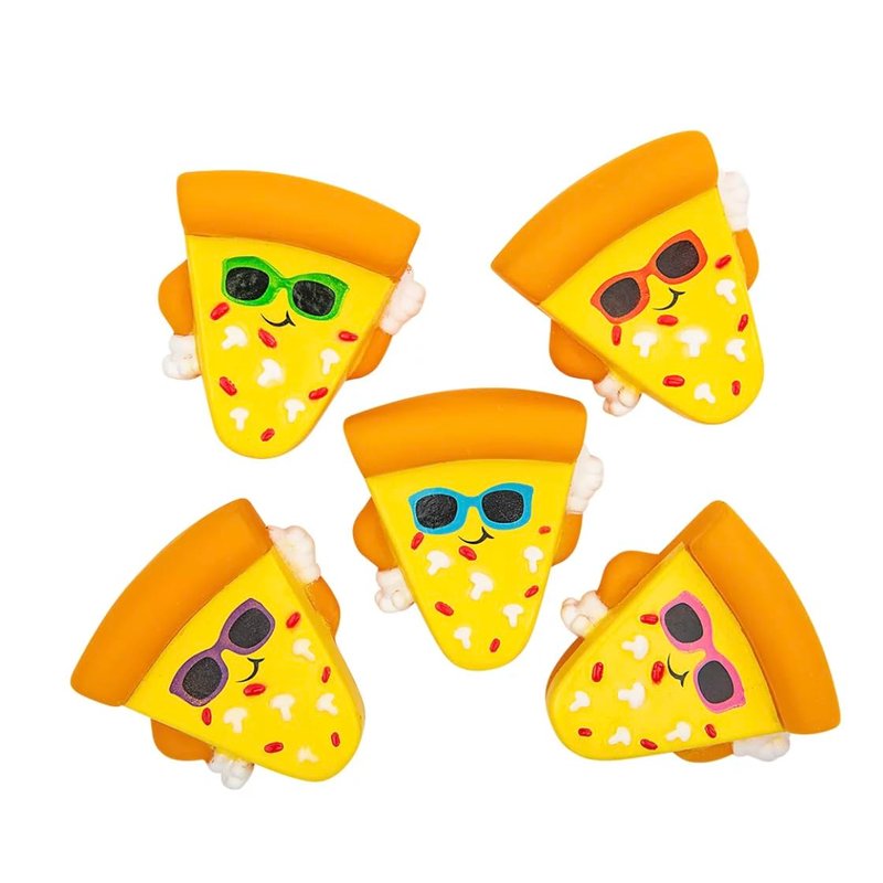 - FUN PARTY FAVORS: Looking for party favors for your next pizza party? These extra cheesey rubber pizza character toys are just the thing! They also make great additions to classroom treasure boxes, reward boxes, and pinata stuffers.