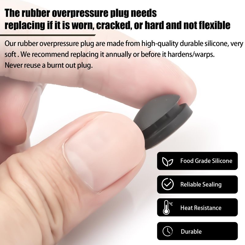 - High Quality : The rubber overpressure plug needs replacing if it is worn, cracked, or hard and not flexible, Our rubber overpressure plug are made from high-quality durable silicone, very soft . We recommend replacing it annually or before it hardens/warps. Never reuse a burnt out plug.