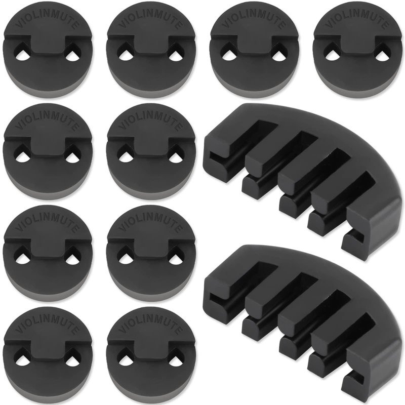 Rubber Violin Practice Mute Set, 10 Pack Round Tourte Style Mute for Violin and Small Viola & 2 Pack Claw Style 4/4 Violin Practice Mute,Ultra Practice Silencer(Black)