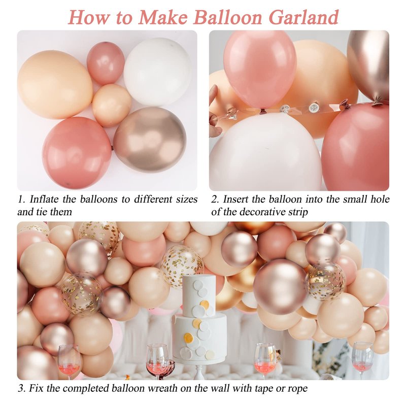 - Wide Application: Retro Pink Gold Balloon Garland is a hot party trend. It is widely used in baby shower, bridal shower, wedding, birthday, etc. Blush balloons will impress your friends or guests and add a romantic atmosphere.
