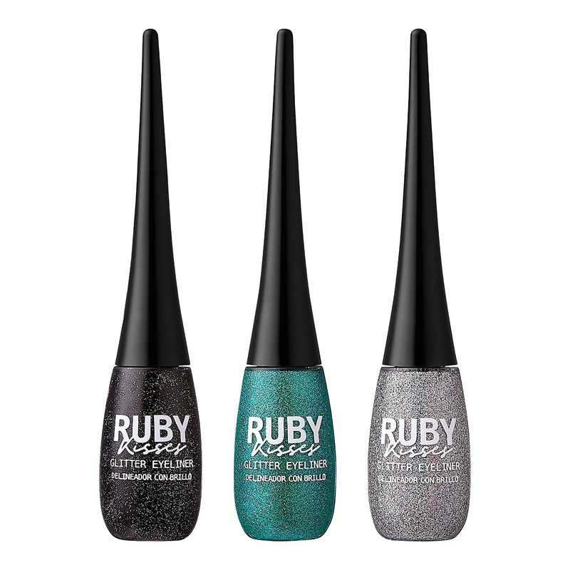 Ruby Kisses I-Bling Liquid Eyeliner 3 PACK (Glitz N' Black,Glitz N' Green,Disco Ball)