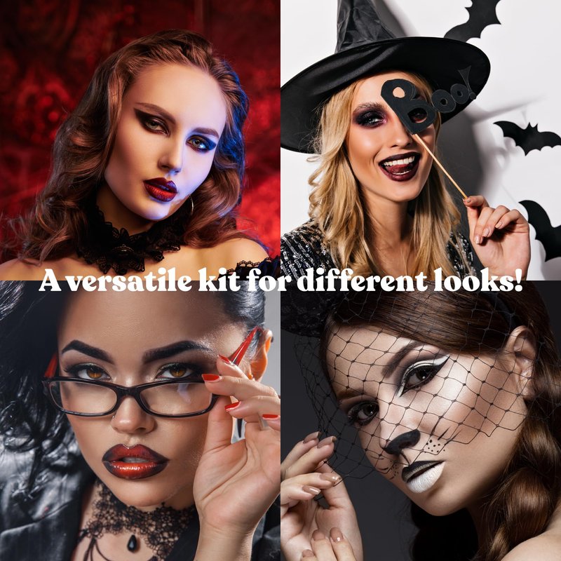 - EASY HALLOWEEN GLAM: This kit includes everything you need for creative Halloween makeup looks that last all night, from bold lips to glittering eyes