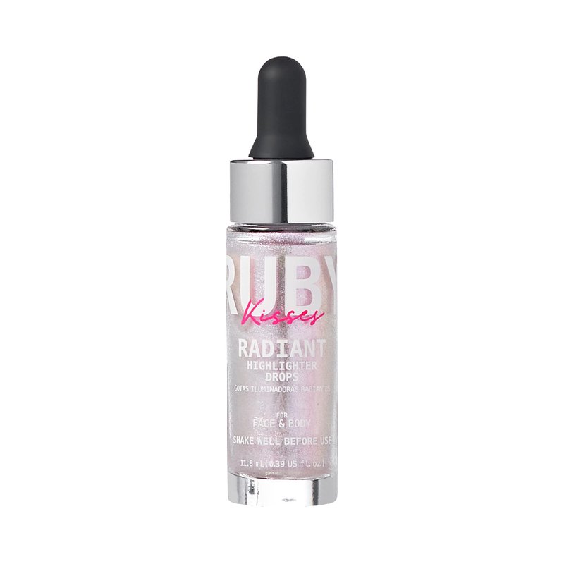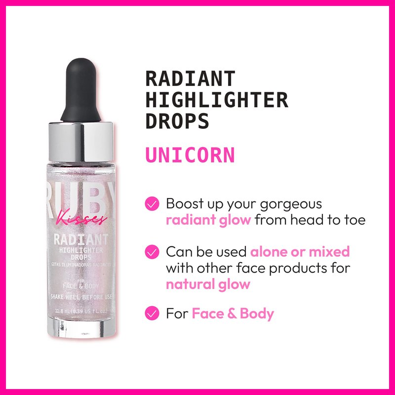Ruby Kisses Radiant Drops, Shimmer Liquid Highlighter Makeup, Smooth Illuminator for Face Body, Natural Glow Dewiness Glitter for Skin (UNICORN)