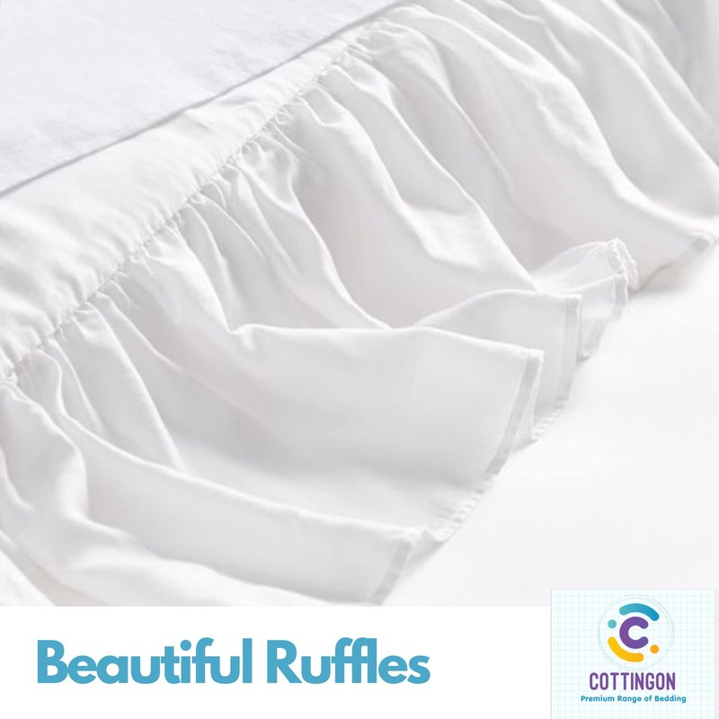 Cottingon Ruffled Bed Skirt - A Perfect Finishing Touch to Your Bed! Improve the look of your bedroom with this ruffled bed skirt. Made with a blend of cotton and polyester, this premium quality bedskirt wears well and is long lasting. The Cottingon Bedskirt is neatly ruffled around three sides with split corners and works best on beds with bed posts that get in the way of ordinary bedskirts. PRODUCT FEATURES SIZING Twin: 39" x 75"Full: 54" x 75"Queen: 60" x 80"King: 78" x 80" DROP -12" to 26" Multiple color Dark GreyIvoryLight BlueLight GreyNavy BlueSageTaupeWhite Easy Care Made of smooth microfiber polyester fabric,can be machine wash.buyer can wash it and steam it (used a steam iron on a low setting ) before use it.It will looks great and beautiful Ruffled designed makes your room more elegant.