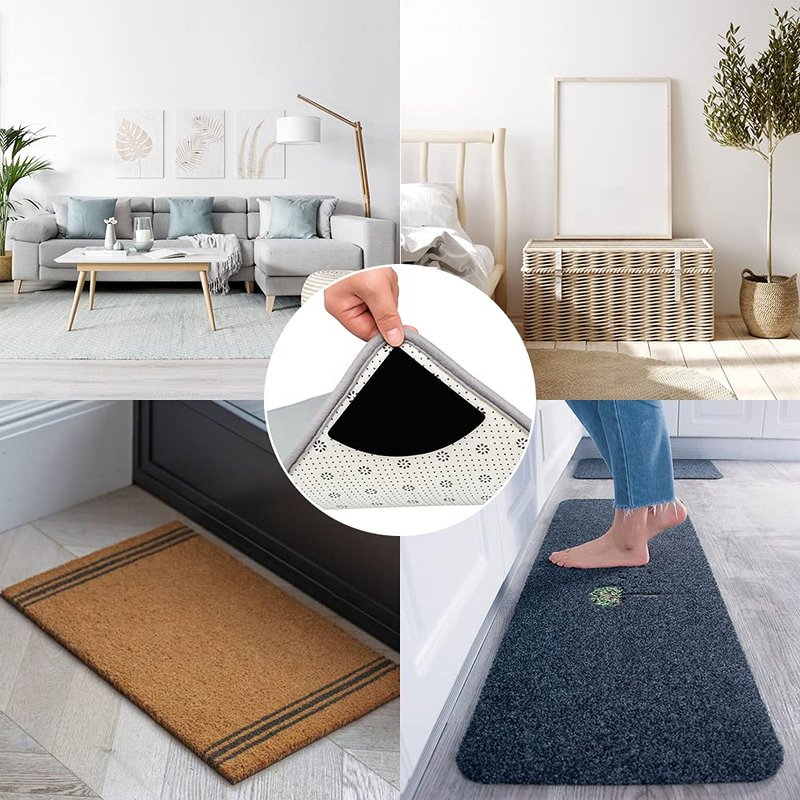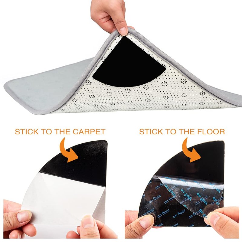 - 【SECTOR SHAPED DESIGN】: Our sector-shaped rug tape provides a bigger contact surface, fitting your rug corner better. It has strong adhesion and excellent slip grip, keeping your rug in place.