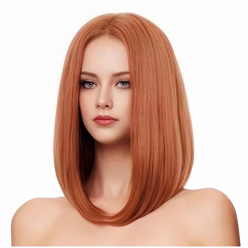 Rugelyss Copper Red Auburn Bob Wigs for Women, 14 Inches Ginger Wig with Middle Part Synthetic Hair Wig for Daily Party or Cosplay
