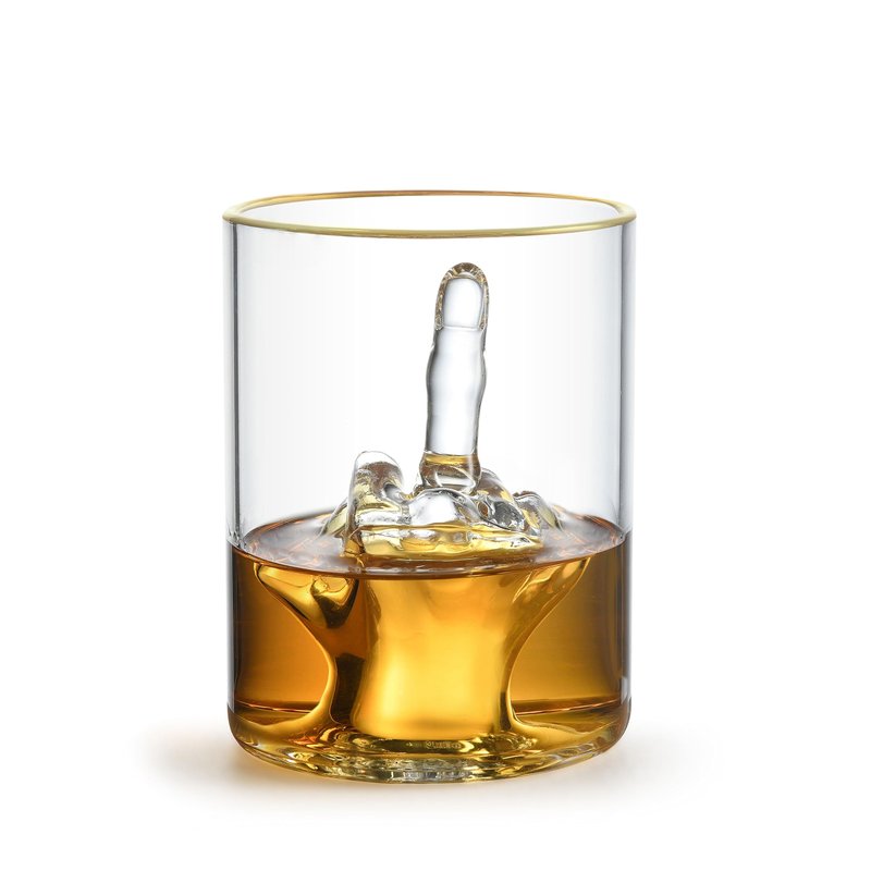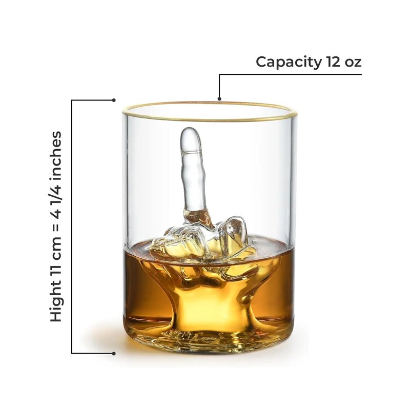 - Flip Off In Style: Send the right message and make sure they get it with our superb, funny drinking glasses featuring a 3D middle finger right in the middle of the glass! The elegant golden painted rim will add a chic touch to your serving experience!