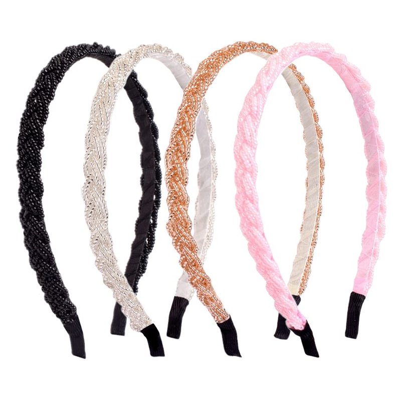 Ruihfas 4 Pieces Elegant Beaded Crystal Headband Bead Hair Band Hair Hoop Accessories for Women Girls