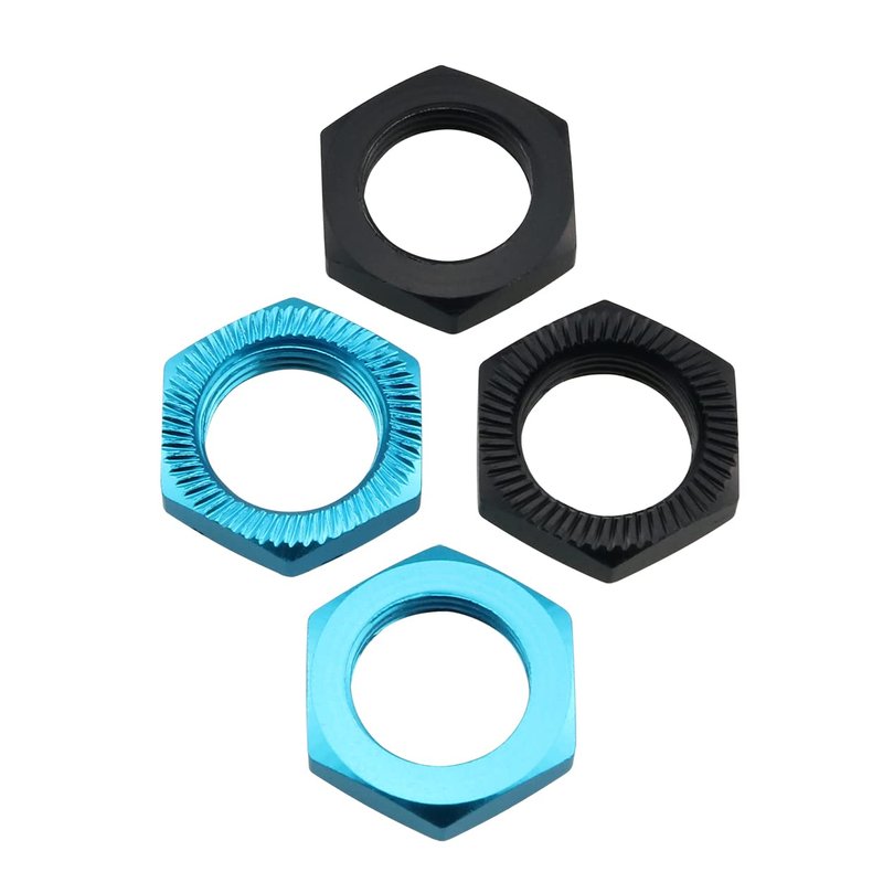 - Product includes: 8PCS 17mm aluminum alloy nuts (4 black, 4 blue).