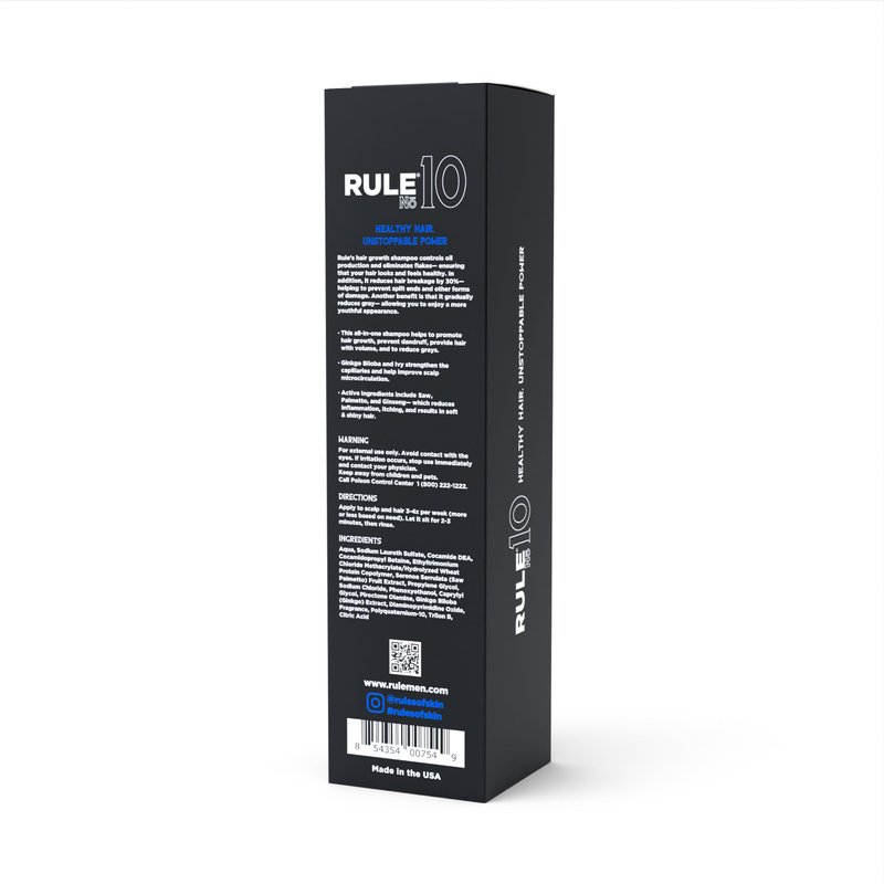 Combat thinning, hair loss, and greys with our advanced shampoo —- Rule No. 10 Grey Reducing Shampoo! Restore Color & Revive Shine Powered by Greyverse, this shampoo naturally reduces greys and revitalises your hair’s natural colour. Antioxidant-rich argan oil hydrates deeply, while biotin boosts thickness and volume for radiant hair. Fight Thinning, Strengthen Hair Block DHT and combat hair loss with saw palmetto extract. Paired with argan oil, it improves elasticity and strengthens strands, leaving hair fuller, healthier, and more resilient. Boost Growth from the Roots Caffeine-infused to energise hair follicles and stimulate scalp circulation, this shampoo creates the ideal environment for enhanced growth, thicker strands, and stronger roots. Effortless Care, Visible Results Apply 3-4 times weekly, leaving on for 2-3 minutes to activate its powerful ingredients. Rinse thoroughly and adjust usage for personalised, long-lasting results. No Fillers, All Results Achieve healthier, fuller hair with every wash. This shampoo restores color, fortifies follicles, and enhances volume without unnecessary additives. Grab a bottle now and take the first step to vibrant, confident hair!