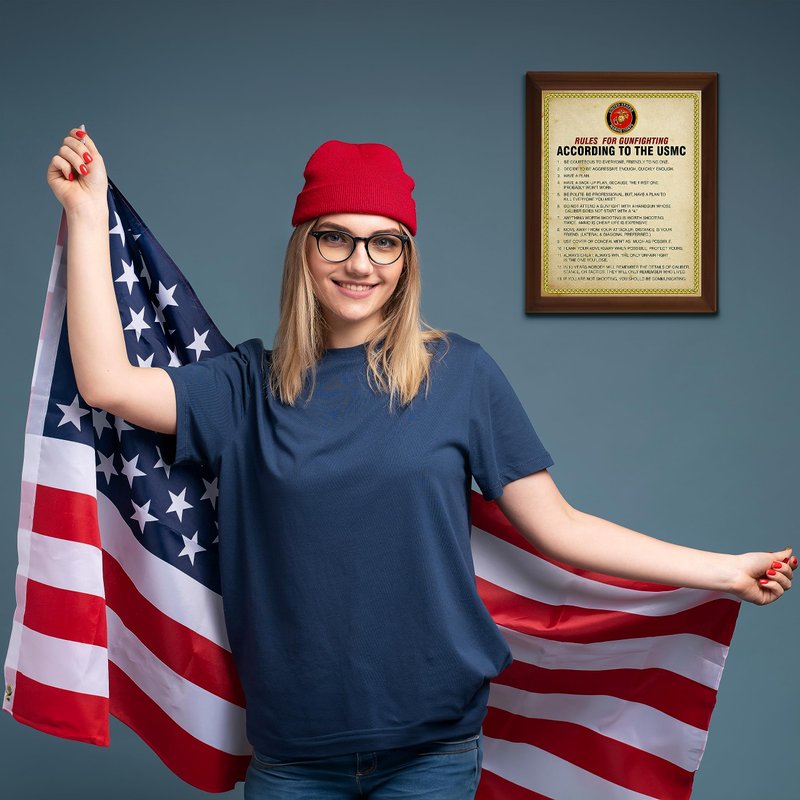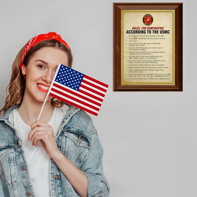 - Patriotic Wall Art Poster: Showcase your American pride with this USMC wall decor featuring the iconic rules of gun fighting. This piece enhances military offices, home spaces, and adds a patriotic touch to any occasion.
