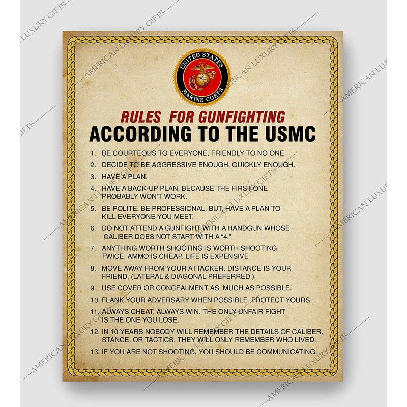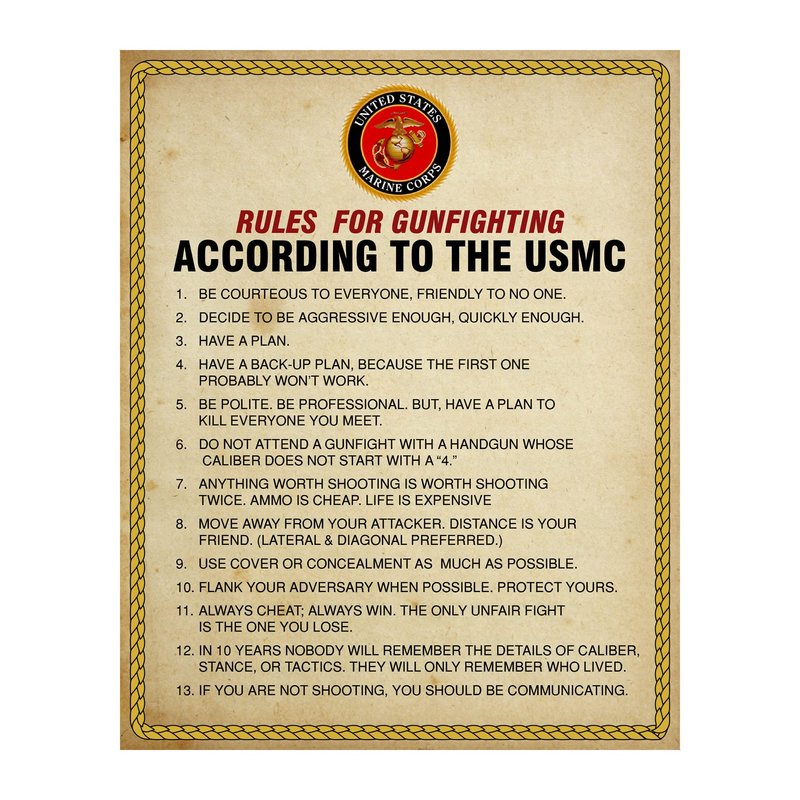 - Color: Rules For Gun Fighting According To USMC -8x10