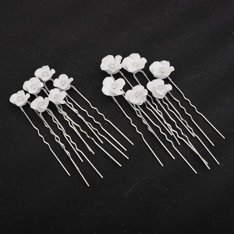 Rumtock 12pcs Pottery White Flower Hair Piece for Women Girls Wedding Bridal Hair Piece Hair Styling Jewelry for Women Girls Handmade Jewelry Set (Silver)