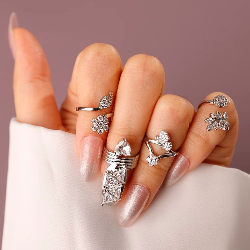 Rumtock CZ Crystal Beads Women Nail Cap Finger Tip Manicure Protective Nail Art for Women Girls Statement Punk Jewelry