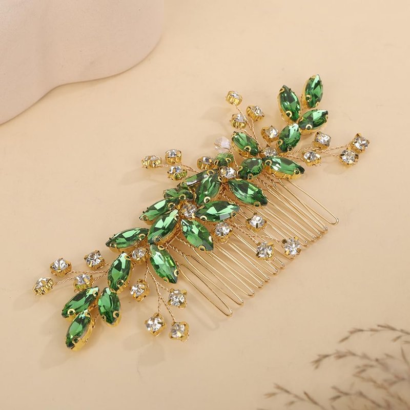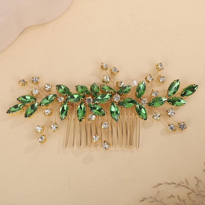 Rumtock Emerald Green Crystal Gold Hair Comb for Women Wedding Bridal Hair Piece Handmade Side Headpiece with Rhinestones (Emerald)