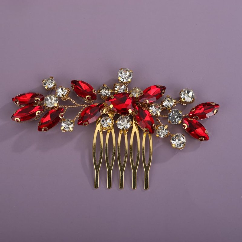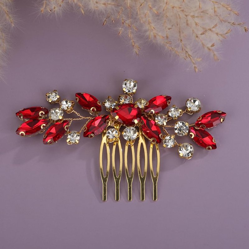 Rumtock Red Rhinestones Beads Gold Hair Comb for Wedding Brides Side Headpiece Women Banquet Prom Hair Jewelry (Red)