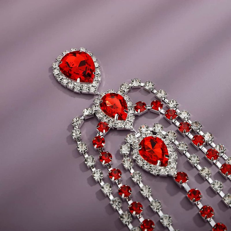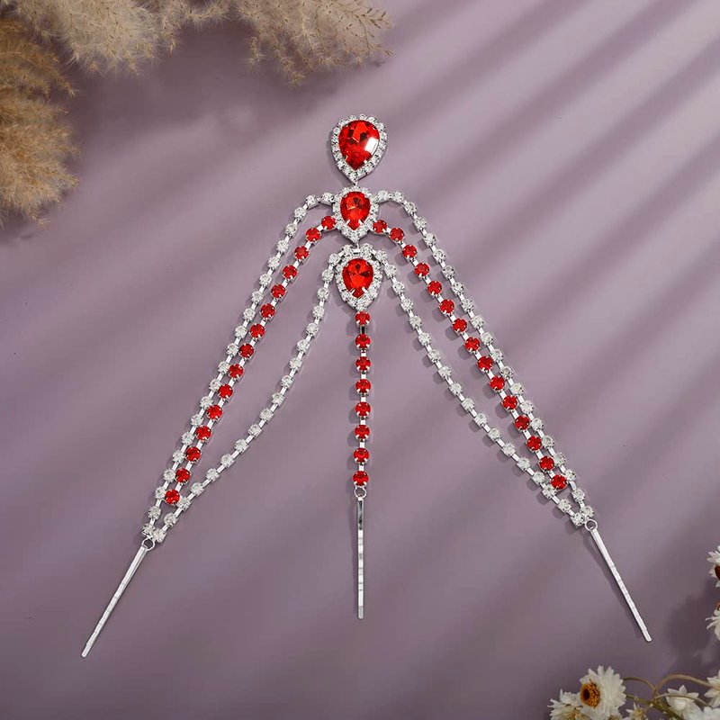 Rumtock Ruby Red Crystal Beads Forehead Chain Multi Layer Silver Hair Accessories for Women Girls Brides