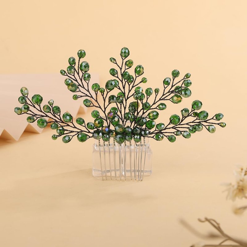 Rumtock Vintage Green Crystal Beads Hair Comb for Women Girls Wedding Bridal Hair Accessories Jewelry Branch Hair Jewelry (Green)
