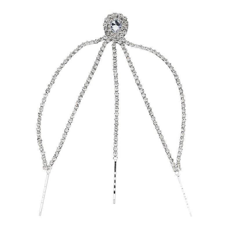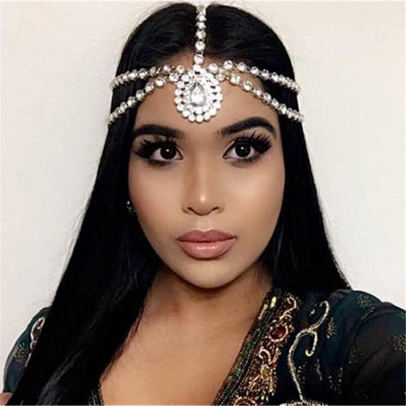 Rumtock Wedding Bridal Teardrop Beads Silver Forehead Head Chain with Bobby Pins Women Girls Exotic Hair Jewelry