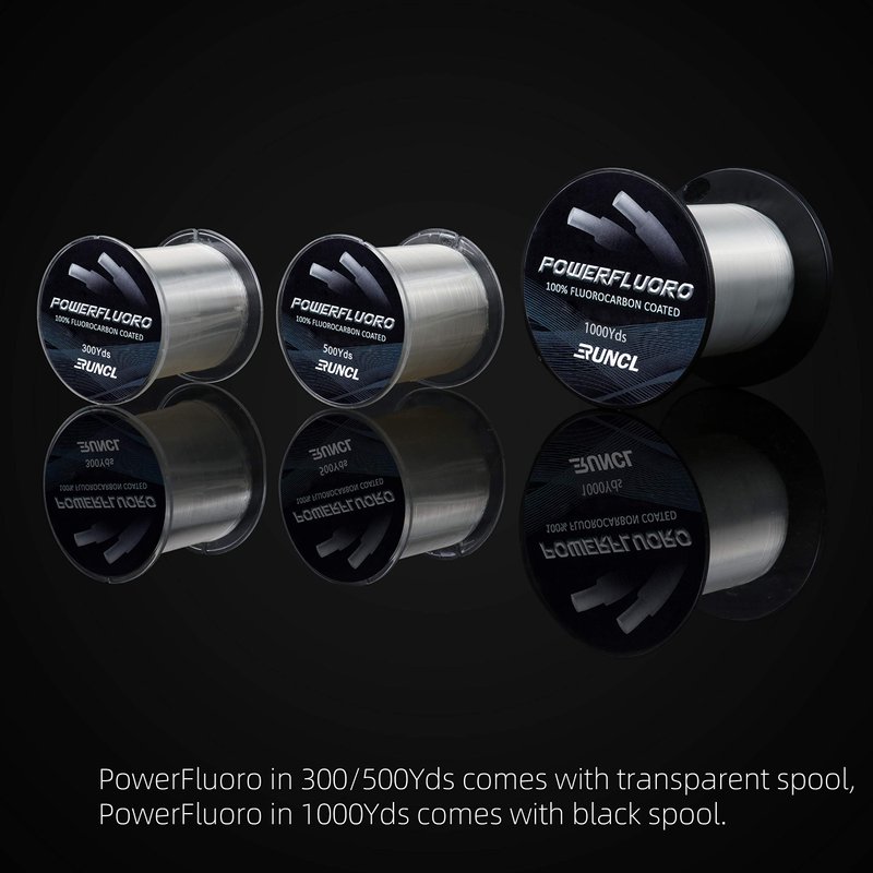 RUNCL PowerFluoro Fishing Line, 100% Fluorocarbon Coated Fishing Line, Hybrid Line - Virtually Invisible, Faster Sinking, Low Stretch, Extra Sensitivity, Abrasion Resistance (300Yds, 8LB(3.6kgs))