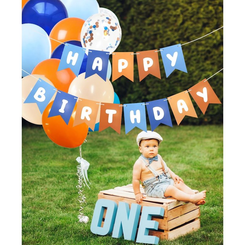 • Happy Birthday: Includes 1 set of "HAPPY BIRTHDAY" banner and a satin strands, very suitable for any blue themed party, the banner are designed in cheerful shades of light blue, navy, brown and orange, you'll have a beautiful and memorable way to celebrate your little one's birthday!