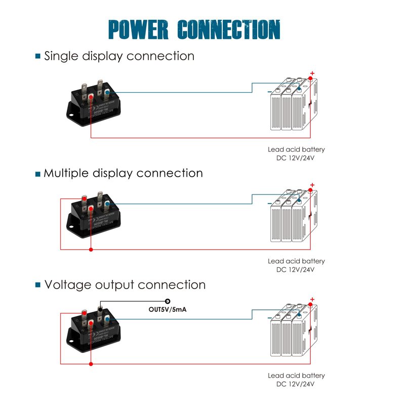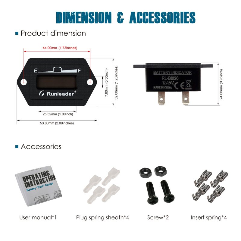 Runleader RL-BI026-12/24V Battery Fuel Gauge Meter,Battery Level Meter,Lead Acid Battery Applicably,Single&Multiple Screen Display, Monitor of Battery Charge &Discharge,Easy to Install,Waterproof Rate IP65.