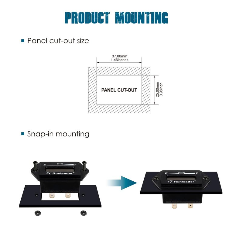 - INSTALLATION ---- Easy to install;Snap-in design and fits standard panel cut-out;panel cutout size:Approx 37×25mm(1.46x0.98 inch).