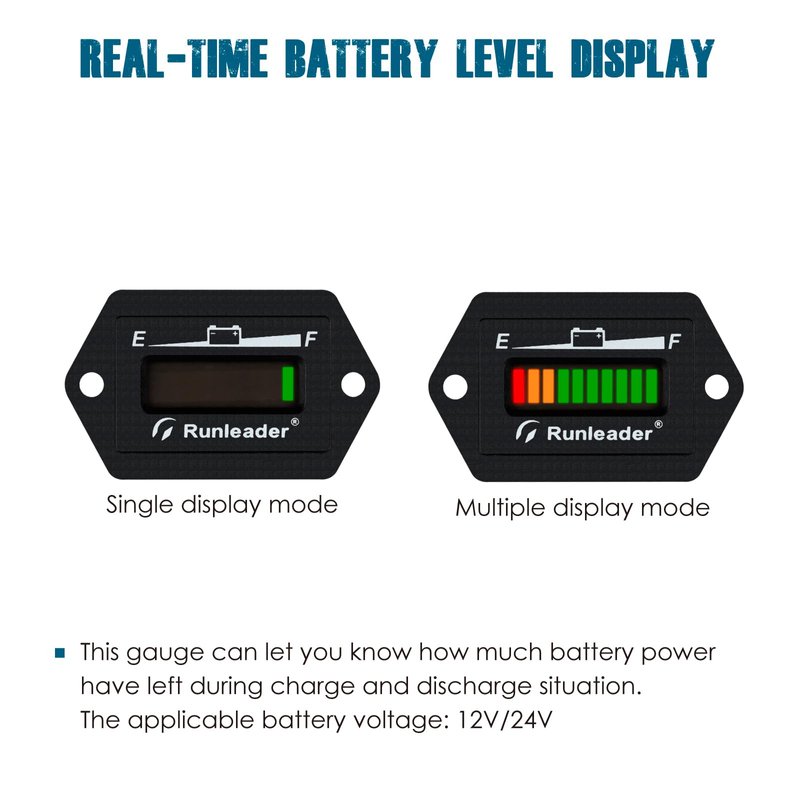 Runleader 12/24V Battery Fuel Gauge Meter,Battery Level Meter,Lead Acid Battery Applicably,Single & Multiple Screen Display for Golf Cart Club Car Forklift Scrubber Machine (12/24V)