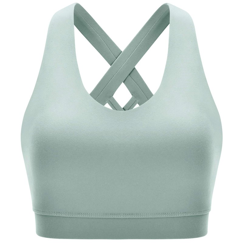 - WHY WE MADE THIS:Need a sports bra that does it all? Look no further! This sweat-wicking cross-strap bra gives you the coverage and support you need for yoga, run, and the gym—without restricting your movement or breath. fabric has added lycra that allows the bra to stretch with you and retain its shape over time. Slip in optional, removable cups for full coverage—if you want it. This bra is intended to provide medium support for great shape retention, long-lasting comfort.