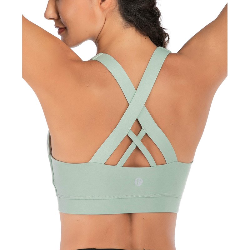 RUNNING GIRL Sports Bra for Women, Criss-Cross Back Padded Strappy Sports Bras Medium Support Yoga Bra with Removable Cups(WX2353D.Green.L)