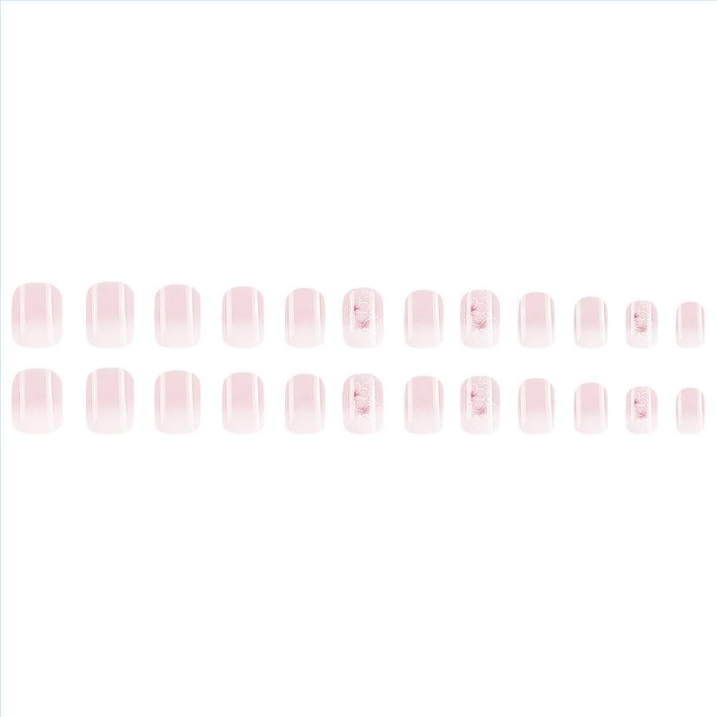 RUPOFUZA Acrylic Press on Nails Short Square Fake Nails White Ombre Glue on Nails Short False Nails with Flower Gloss Designs Nails Press on Artificial Nails Stick on Nails for Women 24Pcs