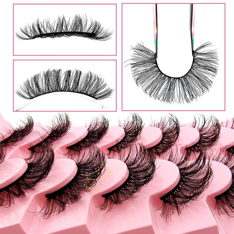 d curl lashes flu-ffy 15mm 18mm russian strip lashes wispy that look like extensions lashes thick volume dramatic eyelashes faux mink false eyelashes fake 7 pairs pack