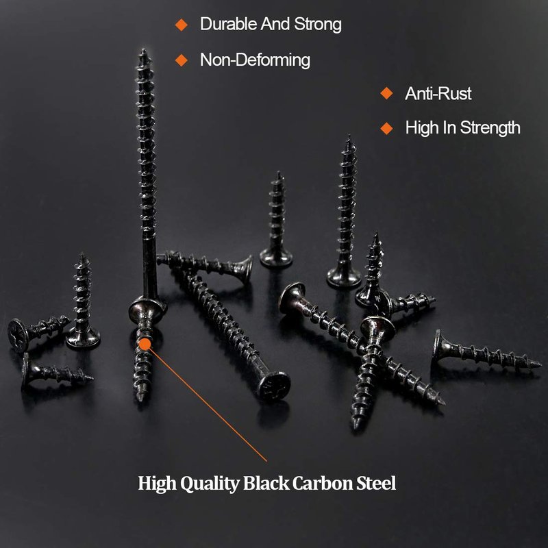 - ❤【ADVANCE MATERIAL】--- These drywall screws are made of high quality black carton steel, surface treated with black oxide, durable and strong, high in strength, non-deforming, anti-corrosion and anti-rust, package in durable transparent box, it can be reserved long time.