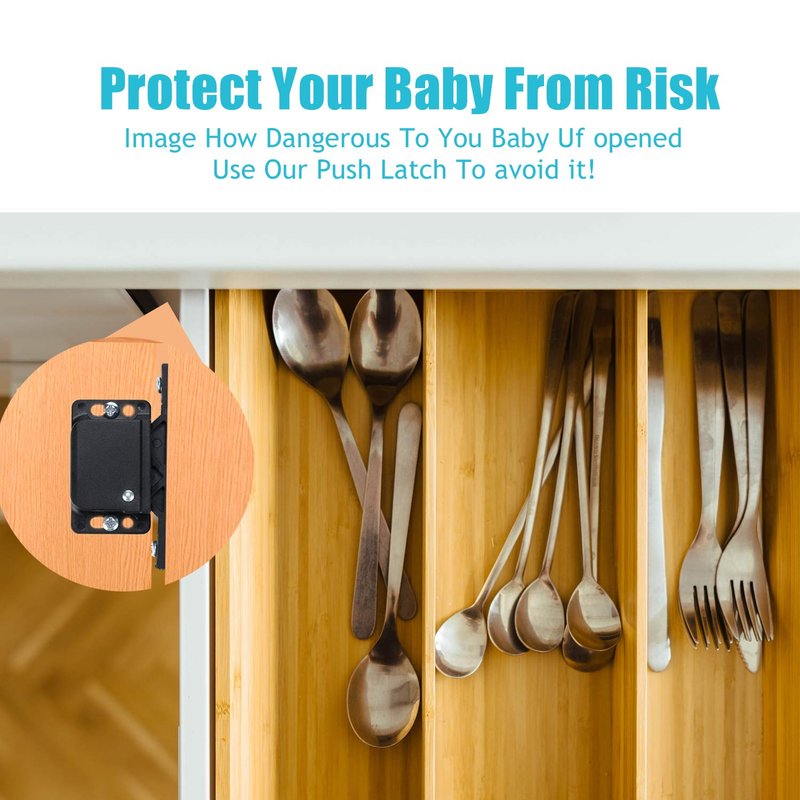- Protect Your Baby From Potential Risk - Our camper latches also can be used to add more security on cabinets and drawers in the home kitchen and rooms. Ideal great affordable accessory to prevent your children from potential risk and make your pets stopping opening the drawers and cabinets. Protect your baby with our cabinet drawer latches from chemical,sharp things and other dangerous things stored in your home kitchen