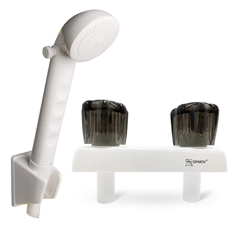 This OYMOV shower faucet diverter&handheld shower head kit is made for 2 hole installation, fits any 4 in opening on RVs, campers, boats. This one for all shower faucet kit is made for and perfect for accommodating everyday use in your recreational vehicles, excellent performance to improve showering experience. A smart choice for your RV shower as it can be used in RV bathrooms well as in outside shower box. The RV shower faucet OYMOV compliance Pass cUPC, NSF61-9 certification.