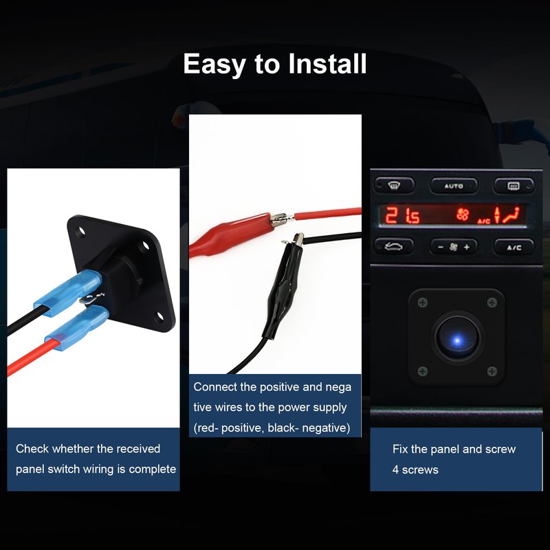 - ✔【Easy to Use】 Connect the copper pins of switch panel to the negative pole of the battery, the next pin is connected to the positive pole of the battery, and the last pin is connected to the positive pole of the device, our 12v switch panel equipped with a keyhole slot to prevent unnecessary rotation.