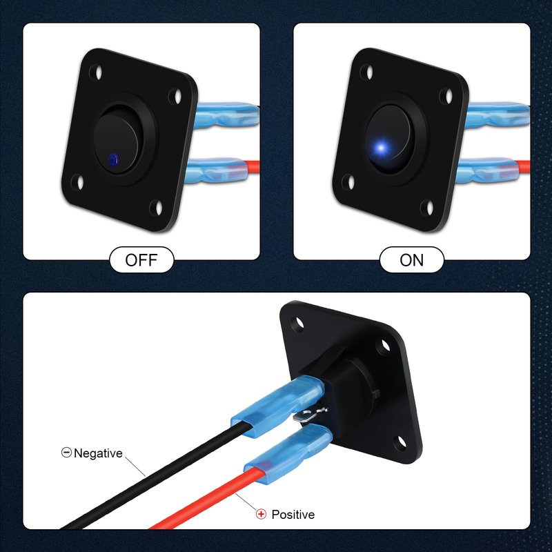 - ✔【Unique Design】 Our toggle switch panel is designed for freely connecting and disconnecting DC 12V 20A circuits, SPST: ON-OFF 2-pole, LED color: blue, Color: blue, Maximum power: 240W.