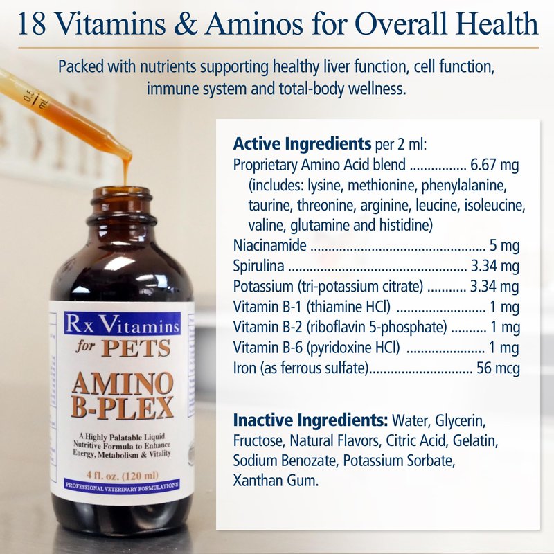 Rx Vitamins Amino B Plex for Pets - B Vitamin Complex Plus Amino Acids for Dogs & Cats - Vitamin Supplements for Dogs' & Cats' Total Body Support - 4 oz