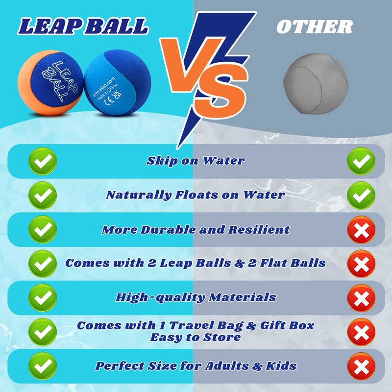 Ryaco Leap Ball Water Skipping Ball Pool Balls - 4 Pack Bouncing Ball Beach Ball for All Ages - Extreme Water Bathing Fun with Your Friends & Family at The Beach, Lake, Pool, River or Lake