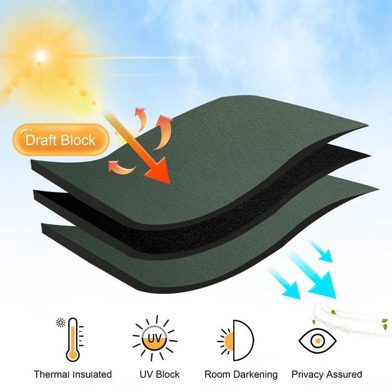 - Block 85-95% sunlights(Dark color works well) thanks to the triple weave technology.