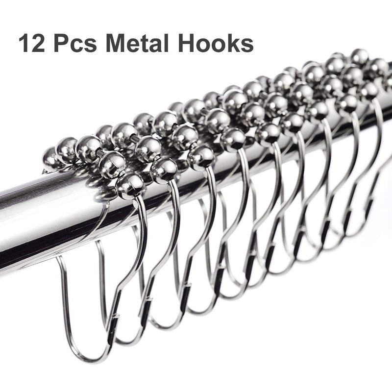 - Metal Hooks and Grommets - The hooks are designed to be semi-circular to reduce friction with the rod. There are five small roller balls at the top of ring, smooth rolling ball bearings eliminate snagging, tugging and pulling of the curtain, the roller function makes the rings to glide effortlessly across your Shower rod.