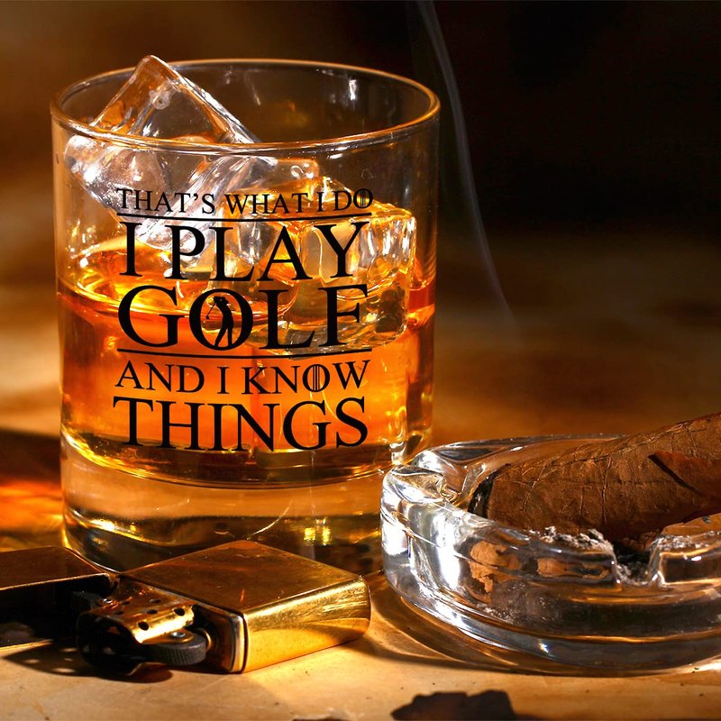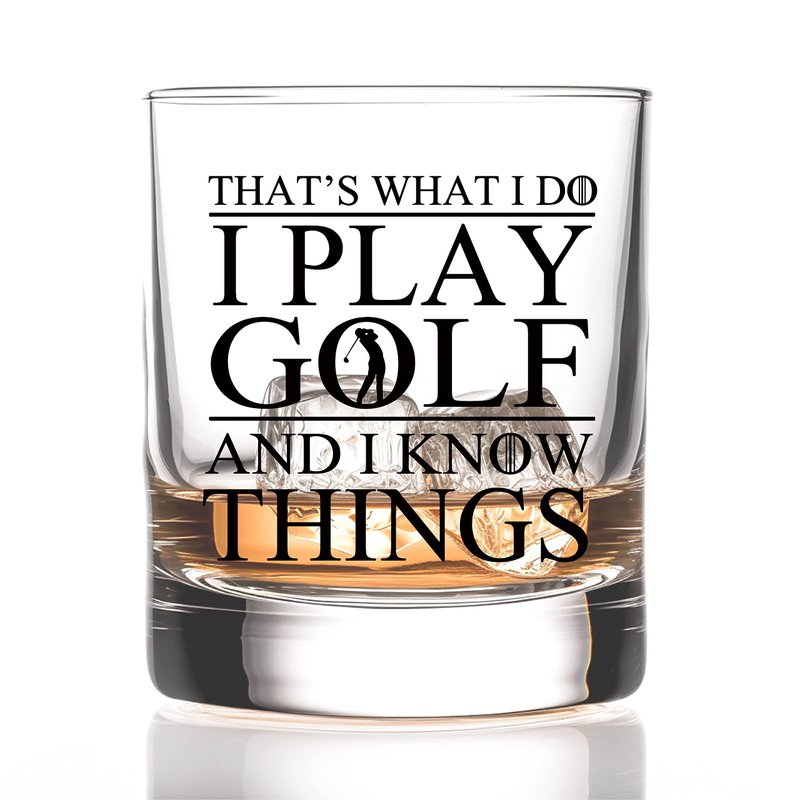RZHV Thats What I Do I Play Golf And I Know Things Old Fashioned Whiskey Glass, Funny Father's Day Anniversary Birthday Gift for Men Husband Dad Uncle Grandpa Friends Coworkers Golf Lover