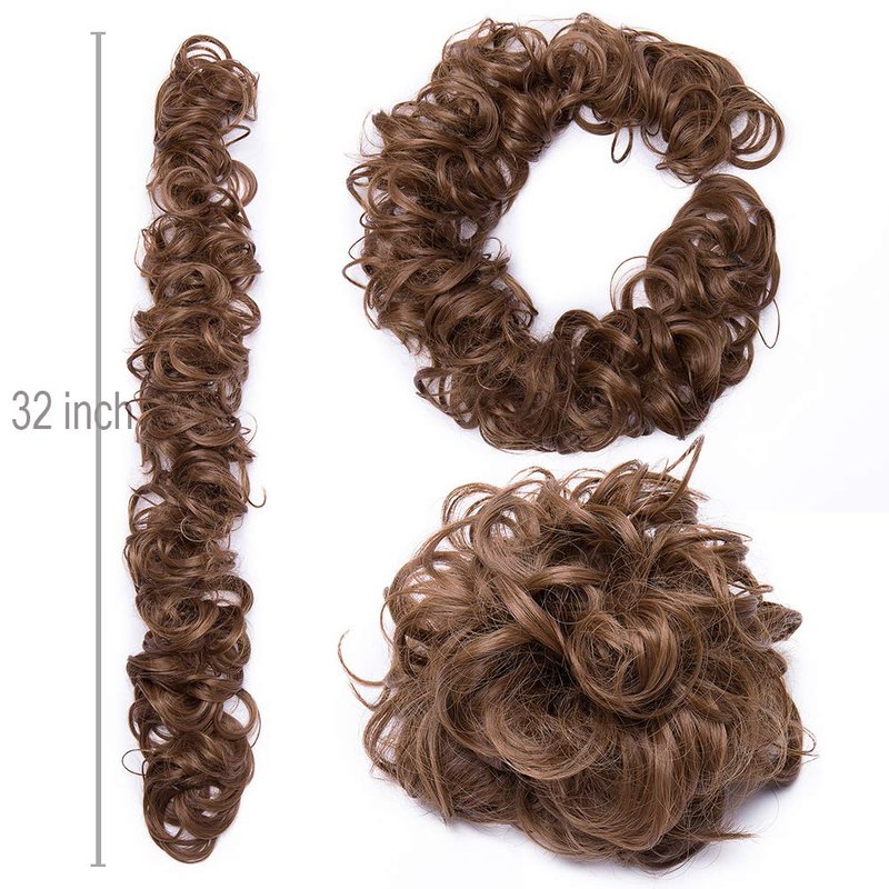 S-noilite Messy Hair Bun Extensions 32 inch Strip Type DIY Wrap Around Touseld Updo Hair Extensions Scrunchie Scrunchy Synthetic Hair Hairpiece Chignons for Women #6 Light Brown