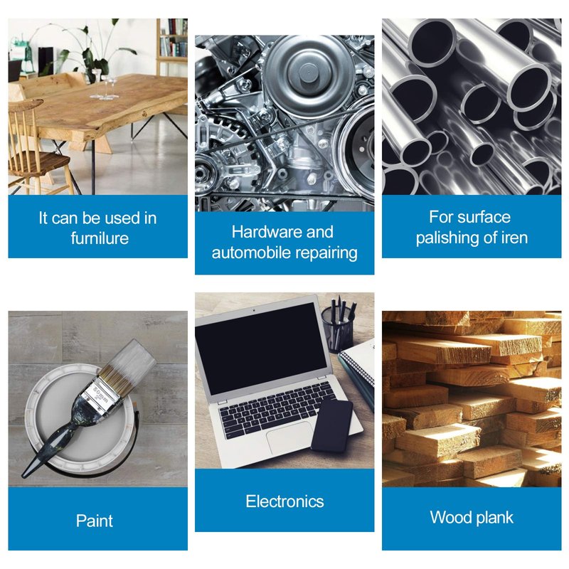 - Wide application: Adhsive back sanding discs used to furniture, automobiles, yachts and other industries of metal and non-metallic materials of various complex surface rust, paint, deburring, solder joints grinding. ▶ ▶ Note: Not for wet sanding.