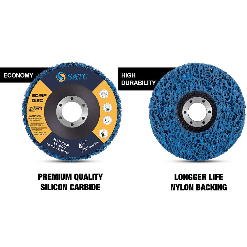 - π FIT YOUR TOOLS: 4 1/2 grinding wheels fit for 4.5" Angle Grinder.Easy Strip and Clean discs are great for auto body shops needing to remove paint and under coating while still protecting the vehicle body.Please do not out of speed.